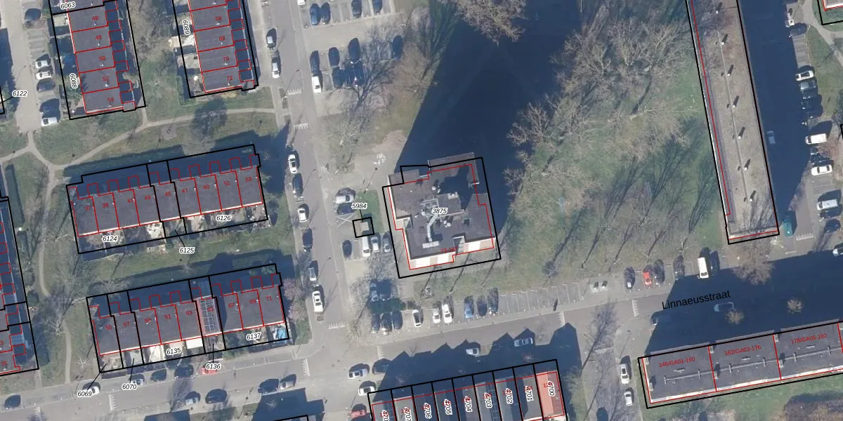Linnaeusstraat 77 is gelegen op kadastraal perceel ZDM01D3875. Deze kadastrale aanduiding is uniek en wordt gebruikt door het Kadaster om eigendomsrechten en andere zakelijke rechten vast te leggen. Het perceel maakt onderdeel uit van de kadastrale gemeente Zaandam.