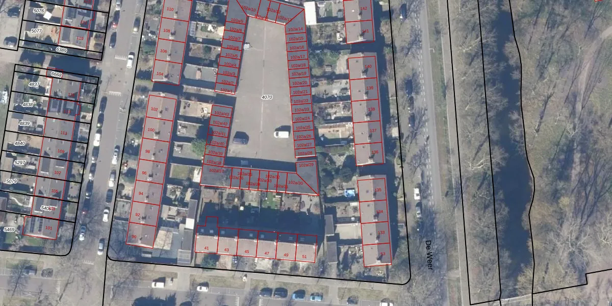 Het perceel waarop Loggerstraat 102-a-28 staat heeft een oppervlakte van 1,0 ha. Dit is een zeer groot perceel. De perceeloppervlakte wordt geregistreerd door het Kadaster. Gedetailleerde informatie over de maten van dit perceel kunt u vinden in het rapport Kadastrale kaart met maatvoering van Loggerstraat 102-a-28.