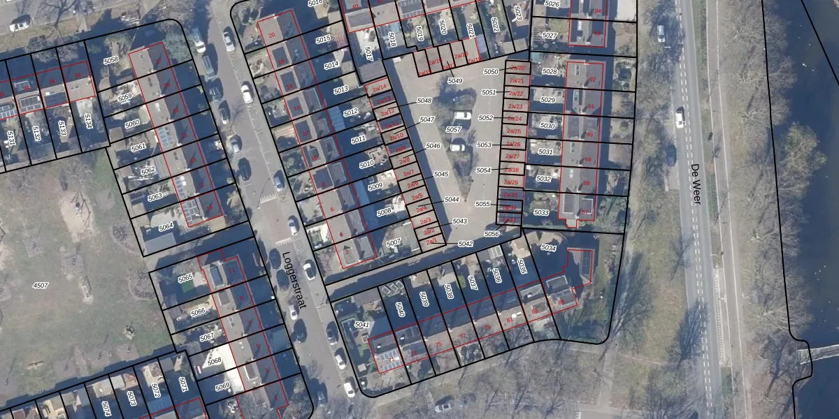 Gebruik de zoekbalk of klik op een perceel voor informatie over de adressen binnen dit perceel.