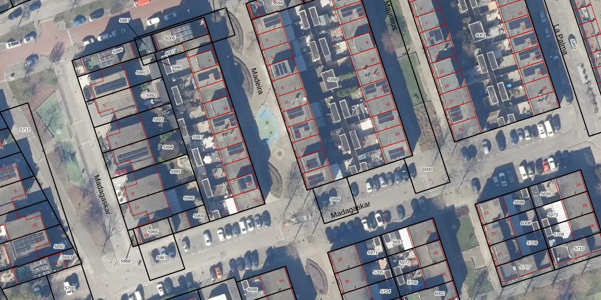 Het perceel waarop Madeira 17 staat heeft een oppervlakte van 2215 m². Dit is een zeer groot perceel. De perceeloppervlakte wordt geregistreerd door het Kadaster. Gedetailleerde informatie over de maten van dit perceel kunt u vinden in het rapport Kadastrale kaart met maatvoering van Madeira 17.