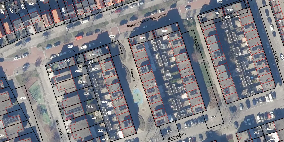 Het perceel waarop Madeira 7 staat heeft een oppervlakte van 2215 m². Dit is een zeer groot perceel. De perceeloppervlakte wordt geregistreerd door het Kadaster. Gedetailleerde informatie over de maten van dit perceel kunt u vinden in het rapport Kadastrale kaart met maatvoering van Madeira 7.