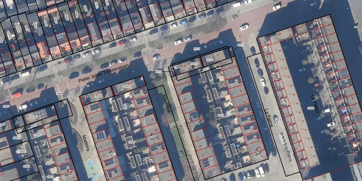 Het perceel waarop Mauritius 3 staat heeft een oppervlakte van 2116 m². Dit is een zeer groot perceel. De perceeloppervlakte wordt geregistreerd door het Kadaster. Gedetailleerde informatie over de maten van dit perceel kunt u vinden in het rapport Kadastrale kaart met maatvoering van Mauritius 3.