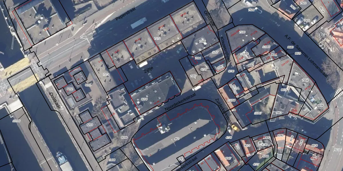 Het perceel waarop Noorderkerkstraat 2-E staat heeft een oppervlakte van 694 m². Dit is een groot perceel. De perceeloppervlakte wordt geregistreerd door het Kadaster. Gedetailleerde informatie over de maten van dit perceel kunt u vinden in het rapport Kadastrale kaart met maatvoering van Noorderkerkstraat 2-E.