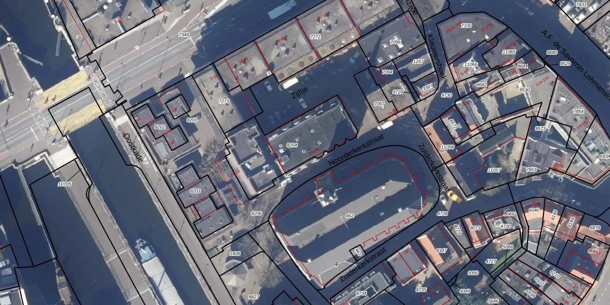 Het perceel waarop Noorderkerkstraat 4-H staat heeft een oppervlakte van 694 m². Dit is een groot perceel. De perceeloppervlakte wordt geregistreerd door het Kadaster. Gedetailleerde informatie over de maten van dit perceel kunt u vinden in het rapport Kadastrale kaart met maatvoering van Noorderkerkstraat 4-H.