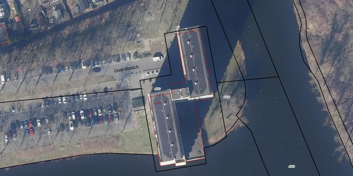 Het perceel waarop Oost-Dorsch 21 staat heeft een oppervlakte van 2705 m². Dit is een zeer groot perceel. De perceeloppervlakte wordt geregistreerd door het Kadaster. Gedetailleerde informatie over de maten van dit perceel kunt u vinden in het rapport Kadastrale kaart met maatvoering van Oost-Dorsch 21.