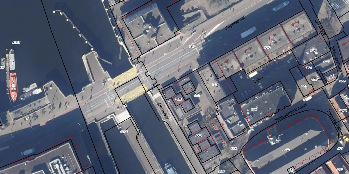 Het perceel waarop Oostkade 1-L staat heeft een oppervlakte van 2039 m². Dit is een zeer groot perceel. De perceeloppervlakte wordt geregistreerd door het Kadaster. Gedetailleerde informatie over de maten van dit perceel kunt u vinden in het rapport Kadastrale kaart met maatvoering van Oostkade 1-L.