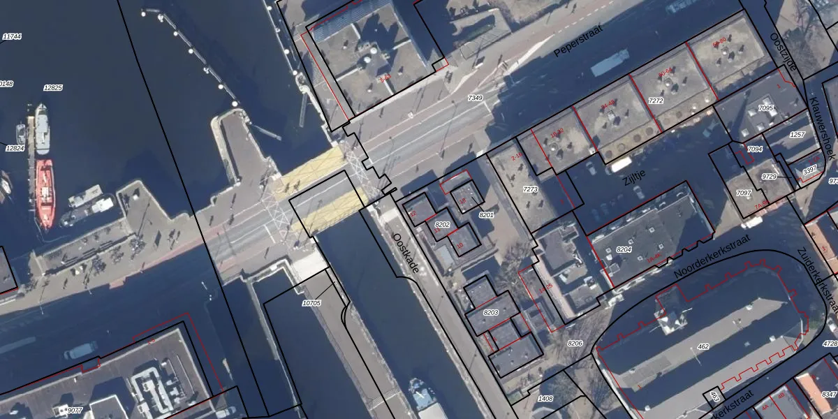 Oostkade 12 is gelegen op kadastraal perceel ZDM01I8202. Deze kadastrale aanduiding is uniek en wordt gebruikt door het Kadaster om eigendomsrechten en andere zakelijke rechten vast te leggen. Het perceel maakt onderdeel uit van de kadastrale gemeente Zaandam.