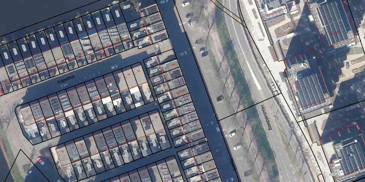 Het perceel waarop Opera 103-A staat heeft een oppervlakte van 90 m². Dit is een klein perceel. De perceeloppervlakte wordt geregistreerd door het Kadaster. Gedetailleerde informatie over de maten van dit perceel kunt u vinden in het rapport Kadastrale kaart met maatvoering van Opera 103-A.