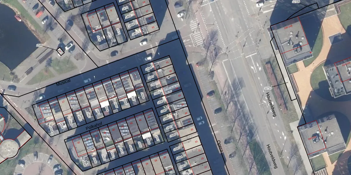 Het perceel waarop Opera 45 staat heeft een oppervlakte van 90 m². Dit is een klein perceel. De perceeloppervlakte wordt geregistreerd door het Kadaster. Gedetailleerde informatie over de maten van dit perceel kunt u vinden in het rapport Kadastrale kaart met maatvoering van Opera 45.