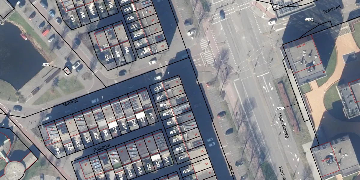Het perceel waarop Opera 49 staat heeft een oppervlakte van 90 m². Dit is een klein perceel. De perceeloppervlakte wordt geregistreerd door het Kadaster. Gedetailleerde informatie over de maten van dit perceel kunt u vinden in het rapport Kadastrale kaart met maatvoering van Opera 49.