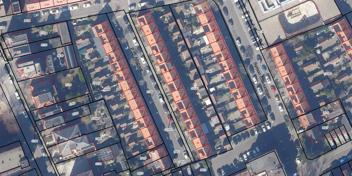 Het perceel waarop P.C. Allstraat 30 staat heeft een oppervlakte van 2059 m². Dit is een zeer groot perceel. De perceeloppervlakte wordt geregistreerd door het Kadaster. Gedetailleerde informatie over de maten van dit perceel kunt u vinden in het rapport Kadastrale kaart met maatvoering van P.C. Allstraat 30.