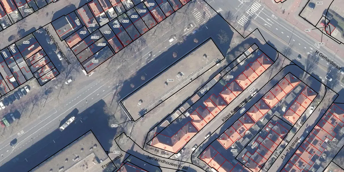 Het perceel waarop het adres ligt is ZDM01-I-7608. De afkorting 'ZDM01' staat voor kadastrale gemeente Zaandam. De oppervlakte van het perceel is 932 m². Dat is groter dan gemiddeld in Zaandam, waar de gemiddelde perceeloppervlakte op 891,55 m² ligt. Het grootste perceel in de kadastrale gemeente is 46,7 ha. Het kleinste perceel heeft een oppervlakte van 0 m². Op het perceel liggen in totaal 19 adressen. De laatste wijziging in het de Basisregistratie Kadaster (BRK) was op 22-05-2001.