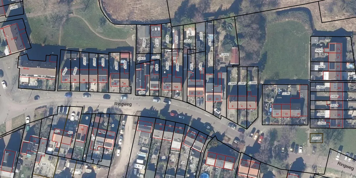 Gebruik de zoekbalk of klik op een perceel voor informatie over de adressen binnen dit perceel.