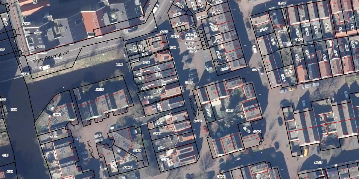 Gebruik de zoekbalk of klik op een perceel voor informatie over de adressen binnen dit perceel.