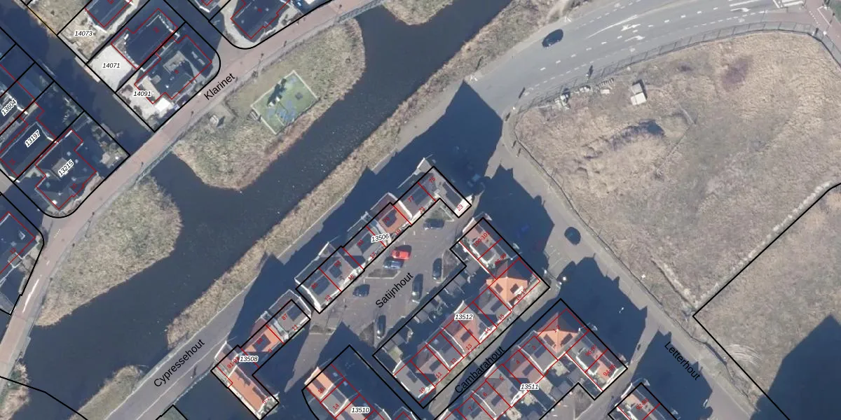 Het perceel waarop Satijnhout 21 staat heeft een oppervlakte van 348 m². Dit is een groot perceel. De perceeloppervlakte wordt geregistreerd door het Kadaster. Gedetailleerde informatie over de maten van dit perceel kunt u vinden in het rapport Kadastrale kaart met maatvoering van Satijnhout 21.