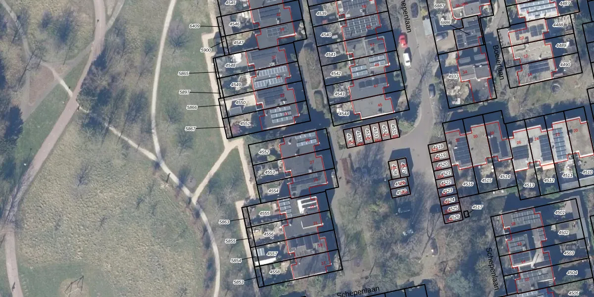Het perceel waarop Schepenlaan 29 staat heeft een oppervlakte van 187 m². Dit is een middelgroot perceel. De perceeloppervlakte wordt geregistreerd door het Kadaster. Gedetailleerde informatie over de maten van dit perceel kunt u vinden in het rapport Kadastrale kaart met maatvoering van Schepenlaan 29.