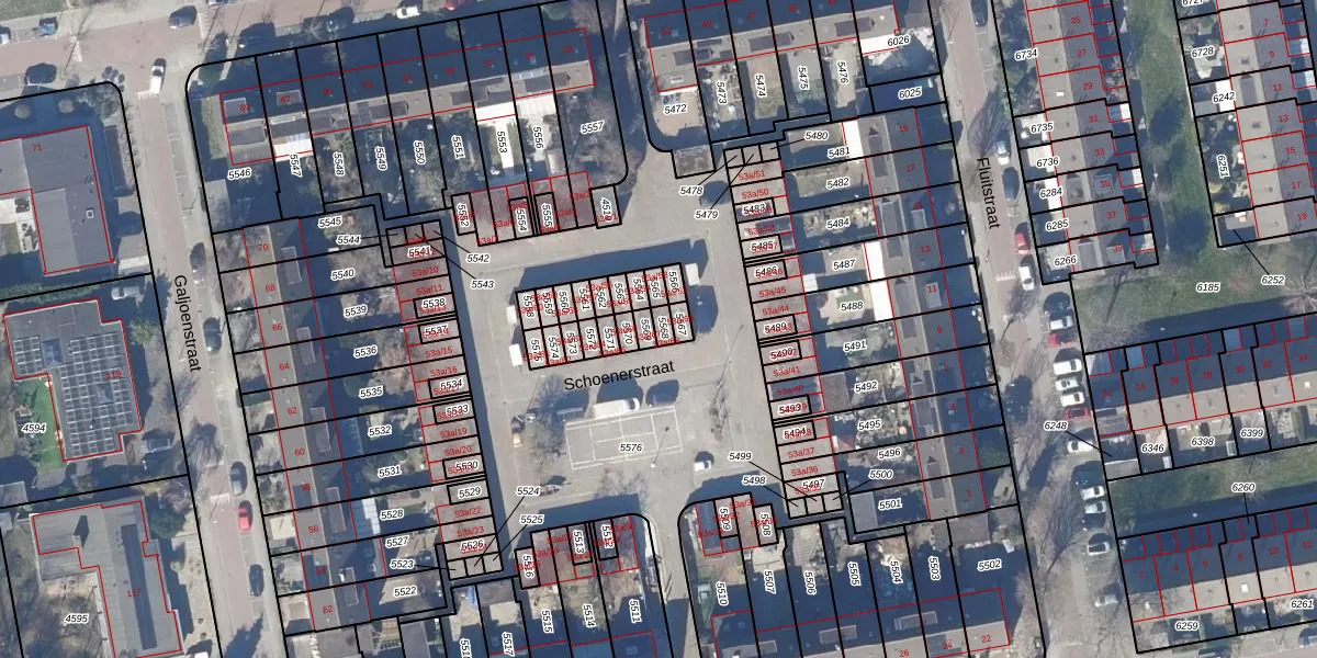 Het perceel waarop Schoenerstraat 53-a-68 staat heeft een oppervlakte van 17 m². Dit is een klein perceel. De perceeloppervlakte wordt geregistreerd door het Kadaster. Gedetailleerde informatie over de maten van dit perceel kunt u vinden in het rapport Kadastrale kaart met maatvoering van Schoenerstraat 53-a-68.