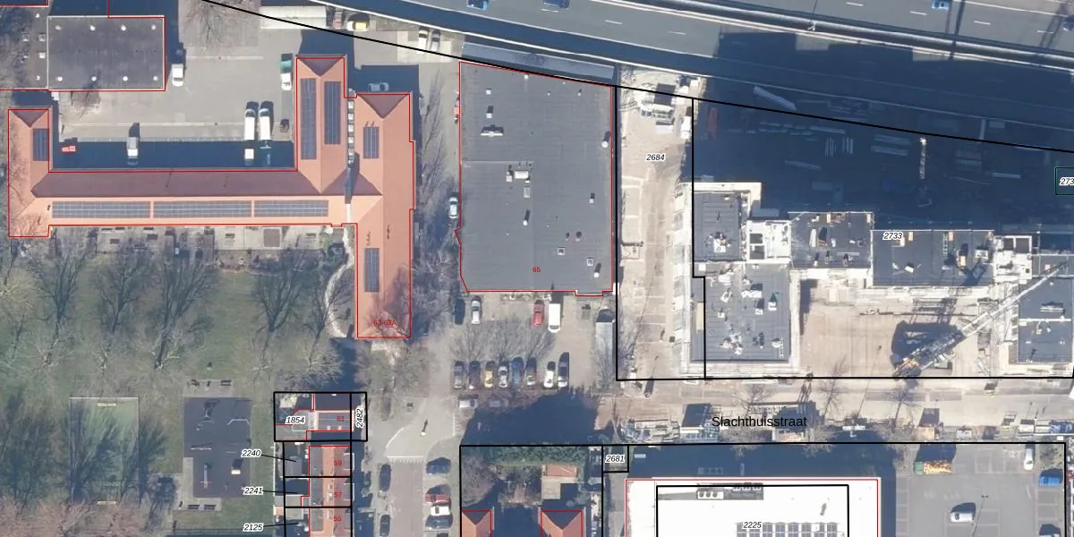 Het perceel waarop Slachthuisstraat 65 staat heeft een oppervlakte van 9,1 ha. Dit is een zeer groot perceel. De perceeloppervlakte wordt geregistreerd door het Kadaster. Gedetailleerde informatie over de maten van dit perceel kunt u vinden in het rapport Kadastrale kaart met maatvoering van Slachthuisstraat 65.