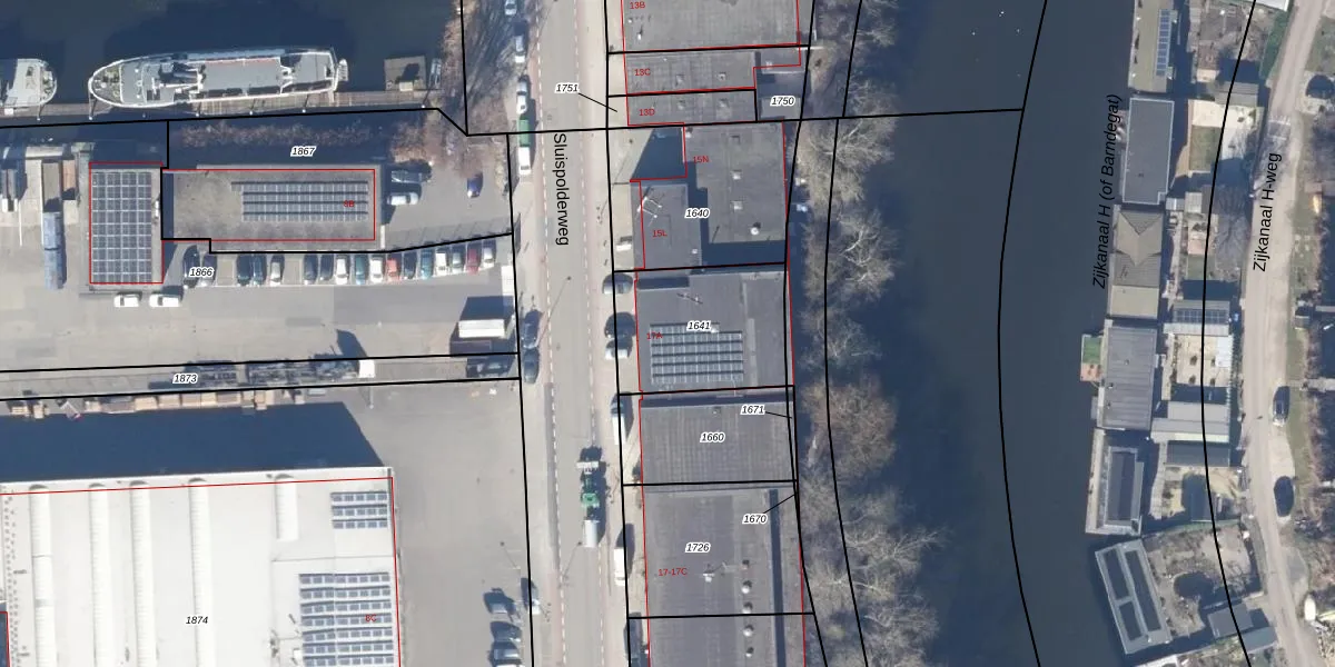 Sluispolderweg 15-A-h is gelegen op kadastraal perceel ZDM01E1641. Deze kadastrale aanduiding is uniek en wordt gebruikt door het Kadaster om eigendomsrechten en andere zakelijke rechten vast te leggen. Het perceel maakt onderdeel uit van de kadastrale gemeente Zaandam.