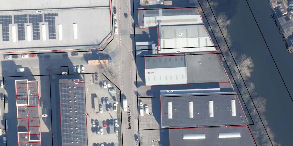 Sluispolderweg 25 is gelegen op kadastraal perceel ZDM01E1494. Deze kadastrale aanduiding is uniek en wordt gebruikt door het Kadaster om eigendomsrechten en andere zakelijke rechten vast te leggen. Het perceel maakt onderdeel uit van de kadastrale gemeente Zaandam.