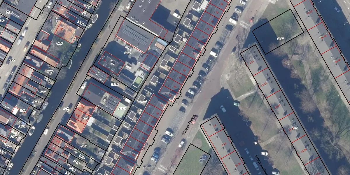 Straat Davis 65 is gelegen op kadastraal perceel ZDM01I6715. Deze kadastrale aanduiding is uniek en wordt gebruikt door het Kadaster om eigendomsrechten en andere zakelijke rechten vast te leggen. Het perceel maakt onderdeel uit van de kadastrale gemeente Zaandam.