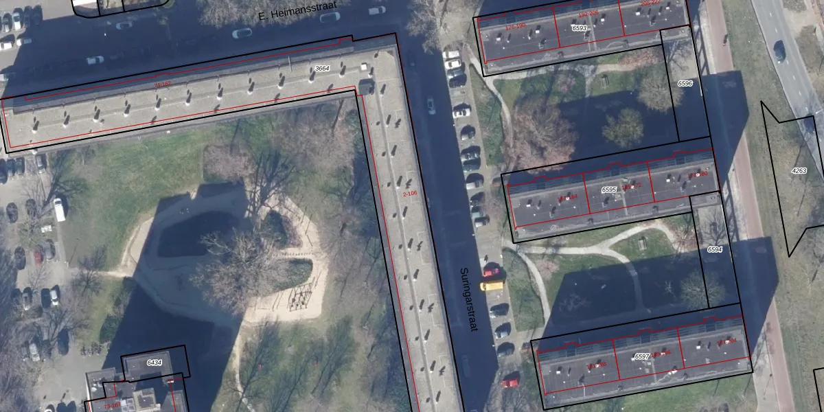 Het perceel waarop Suringarstraat 2-h staat heeft een oppervlakte van 2355 m². Dit is een zeer groot perceel. De perceeloppervlakte wordt geregistreerd door het Kadaster. Gedetailleerde informatie over de maten van dit perceel kunt u vinden in het rapport Kadastrale kaart met maatvoering van Suringarstraat 2-h.