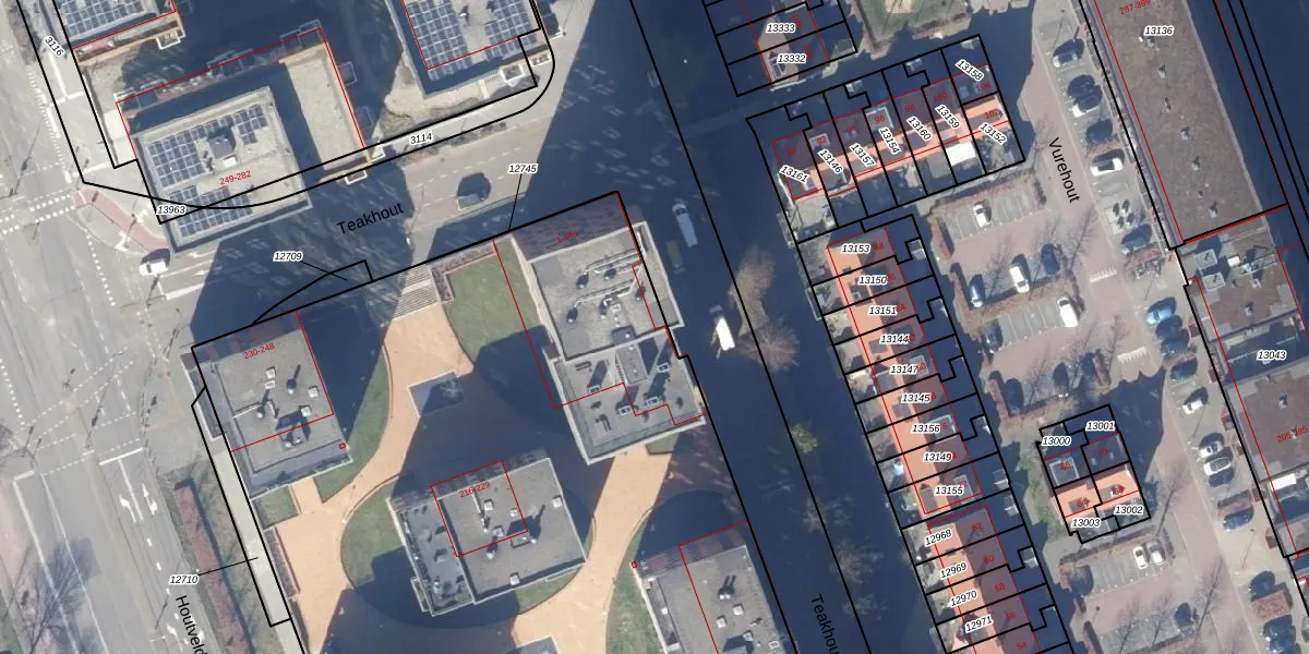 Het perceel waarop Teakhout 11-a staat heeft een oppervlakte van 1,3 ha. Dit is een zeer groot perceel. De perceeloppervlakte wordt geregistreerd door het Kadaster. Gedetailleerde informatie over de maten van dit perceel kunt u vinden in het rapport Kadastrale kaart met maatvoering van Teakhout 11-a.