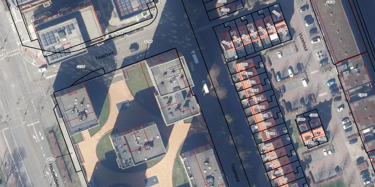 Het perceel waarop Teakhout 17-a staat heeft een oppervlakte van 1,3 ha. Dit is een zeer groot perceel. De perceeloppervlakte wordt geregistreerd door het Kadaster. Gedetailleerde informatie over de maten van dit perceel kunt u vinden in het rapport Kadastrale kaart met maatvoering van Teakhout 17-a.