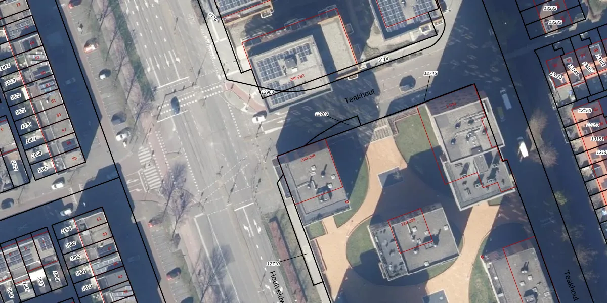 Het perceel waarop Teakhout 239 staat heeft een oppervlakte van 1,3 ha. Dit is een zeer groot perceel. De perceeloppervlakte wordt geregistreerd door het Kadaster. Gedetailleerde informatie over de maten van dit perceel kunt u vinden in het rapport Kadastrale kaart met maatvoering van Teakhout 239.