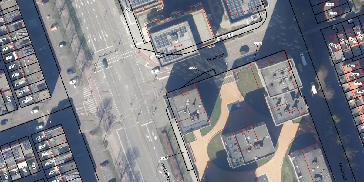 Teakhout 245 is gelegen op kadastraal perceel ZDM01K12752. Deze kadastrale aanduiding is uniek en wordt gebruikt door het Kadaster om eigendomsrechten en andere zakelijke rechten vast te leggen. Het perceel maakt onderdeel uit van de kadastrale gemeente Zaandam.