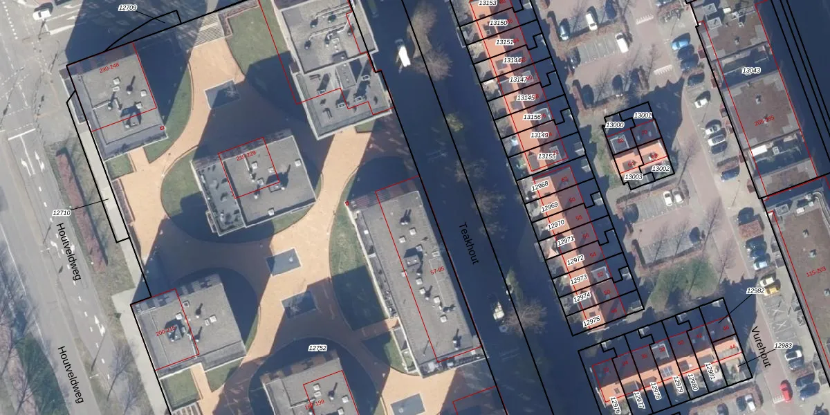 Het perceel waarop Teakhout 77 staat heeft een oppervlakte van 1,3 ha. Dit is een zeer groot perceel. De perceeloppervlakte wordt geregistreerd door het Kadaster. Gedetailleerde informatie over de maten van dit perceel kunt u vinden in het rapport Kadastrale kaart met maatvoering van Teakhout 77.