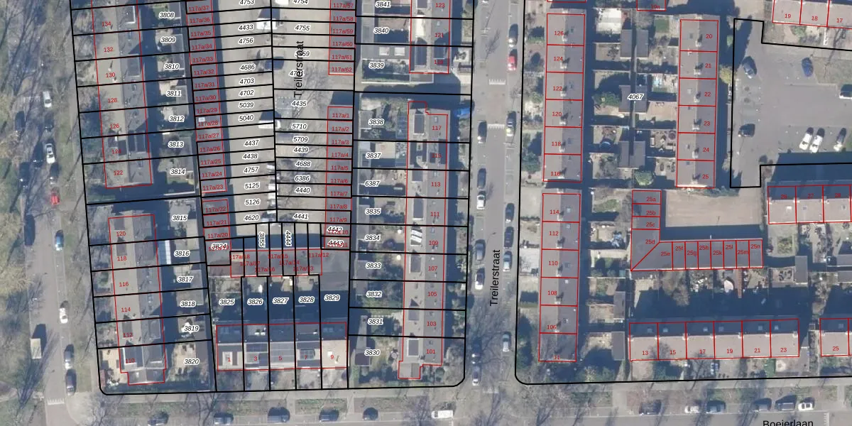 Het perceel waarop Treilerstraat 111 staat heeft een oppervlakte van 234 m². Dit is een middelgroot perceel. De perceeloppervlakte wordt geregistreerd door het Kadaster. Gedetailleerde informatie over de maten van dit perceel kunt u vinden in het rapport Kadastrale kaart met maatvoering van Treilerstraat 111.