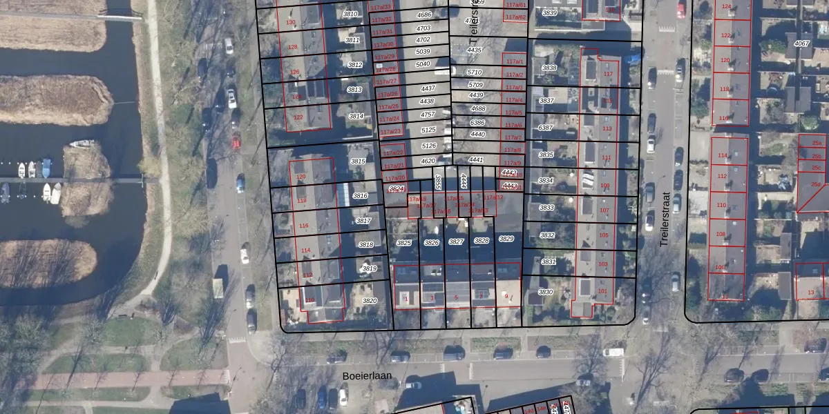 Treilerstraat 117-a-18 is gelegen op kadastraal perceel ZDM01L3825. Deze kadastrale aanduiding is uniek en wordt gebruikt door het Kadaster om eigendomsrechten en andere zakelijke rechten vast te leggen. Het perceel maakt onderdeel uit van de kadastrale gemeente Zaandam.