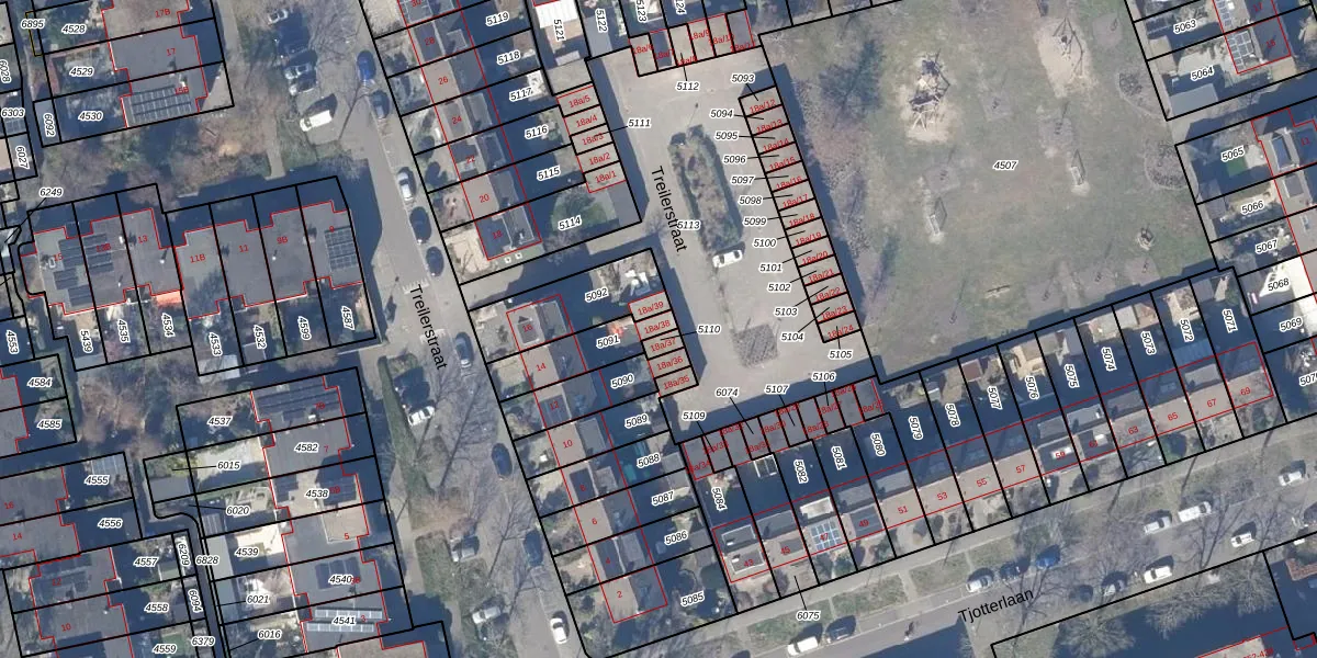 Treilerstraat 18-a-38 is gelegen op kadastraal perceel ZDM01D5091. Deze kadastrale aanduiding is uniek en wordt gebruikt door het Kadaster om eigendomsrechten en andere zakelijke rechten vast te leggen. Het perceel maakt onderdeel uit van de kadastrale gemeente Zaandam.