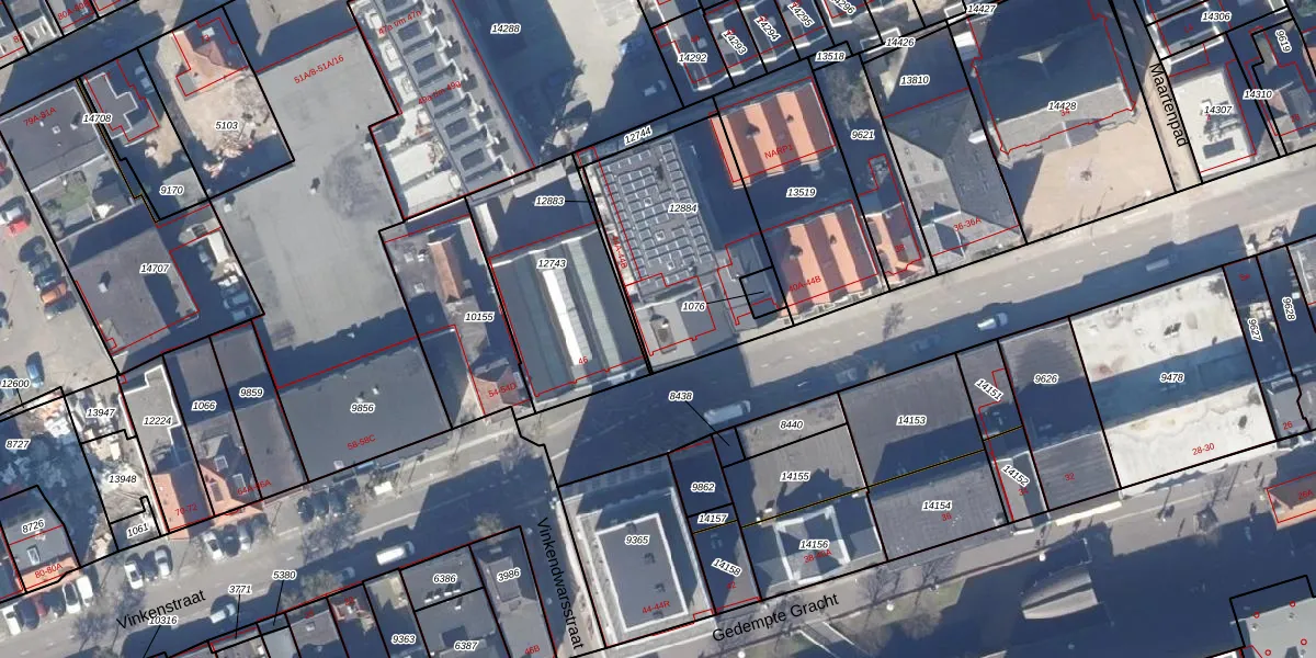 Het perceel waarop Vinkenstraat 40-K staat heeft een oppervlakte van 717 m². Dit is een groot perceel. De perceeloppervlakte wordt geregistreerd door het Kadaster. Gedetailleerde informatie over de maten van dit perceel kunt u vinden in het rapport Kadastrale kaart met maatvoering van Vinkenstraat 40-K.