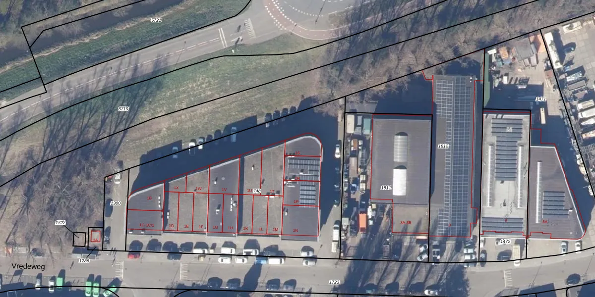 Vredeweg 1-S is gelegen op kadastraal perceel ZDM01E748. Deze kadastrale aanduiding is uniek en wordt gebruikt door het Kadaster om eigendomsrechten en andere zakelijke rechten vast te leggen. Het perceel maakt onderdeel uit van de kadastrale gemeente Zaandam.