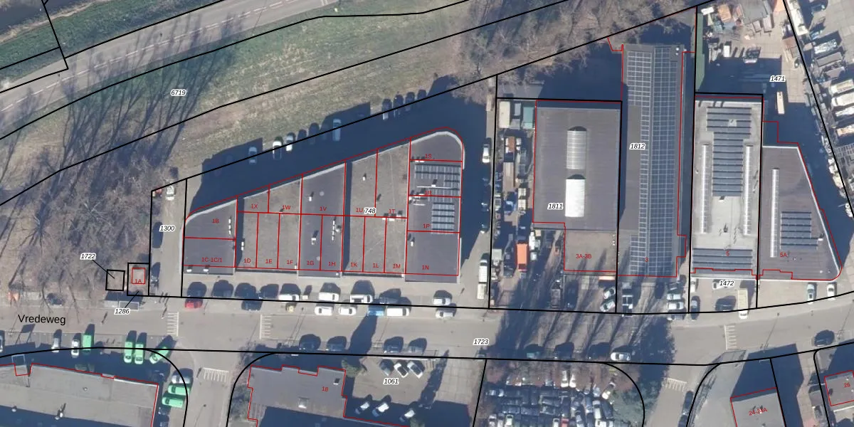 Vredeweg 1-P-2 is gelegen op kadastraal perceel ZDM01E748. Deze kadastrale aanduiding is uniek en wordt gebruikt door het Kadaster om eigendomsrechten en andere zakelijke rechten vast te leggen. Het perceel maakt onderdeel uit van de kadastrale gemeente Zaandam.