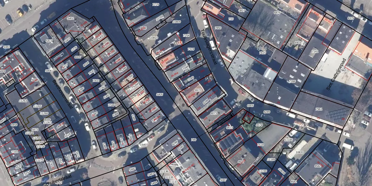 Het adres is gelegen op perceel 9572 in de sectie I en de kadastrale gemeente Zaandam. De kadastrale aanduiding is aldus ZDM01-I-9572. De gemiddelde perceelgrootte in Zaandam is 893,91 m². Dit perceel is kleiner: de perceeloppervlakte bedraagt 149 m². Het kleinste perceel in de kadastrale gemeente is 0 m² groot. De grootste perceeloppervlakte is 46,7 ha. Er zijn 5 adressen aanwezig op het perceel. In de Basisregistratie Kadaster (BRK) werden de grenzen van het perceel geregistreerd op 27-11-2001.