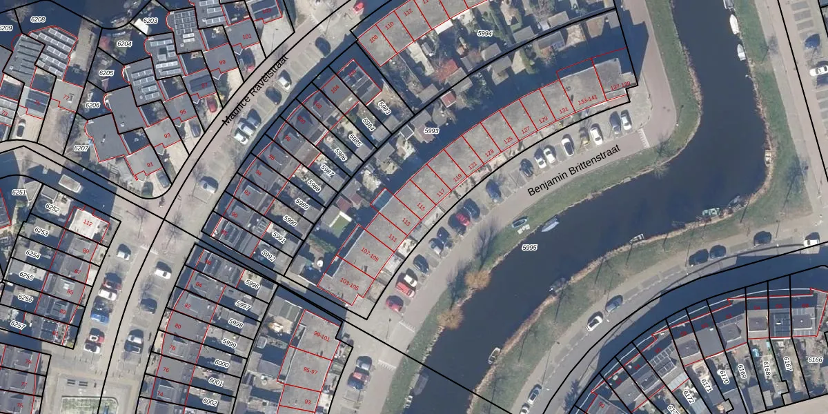 Benjamin Brittenstraat 115 is gelegen op kadastraal perceel ZDK00A5993. Deze kadastrale aanduiding is uniek en wordt gebruikt door het Kadaster om eigendomsrechten en andere zakelijke rechten vast te leggen. Het perceel maakt onderdeel uit van de kadastrale gemeente Zaandijk.