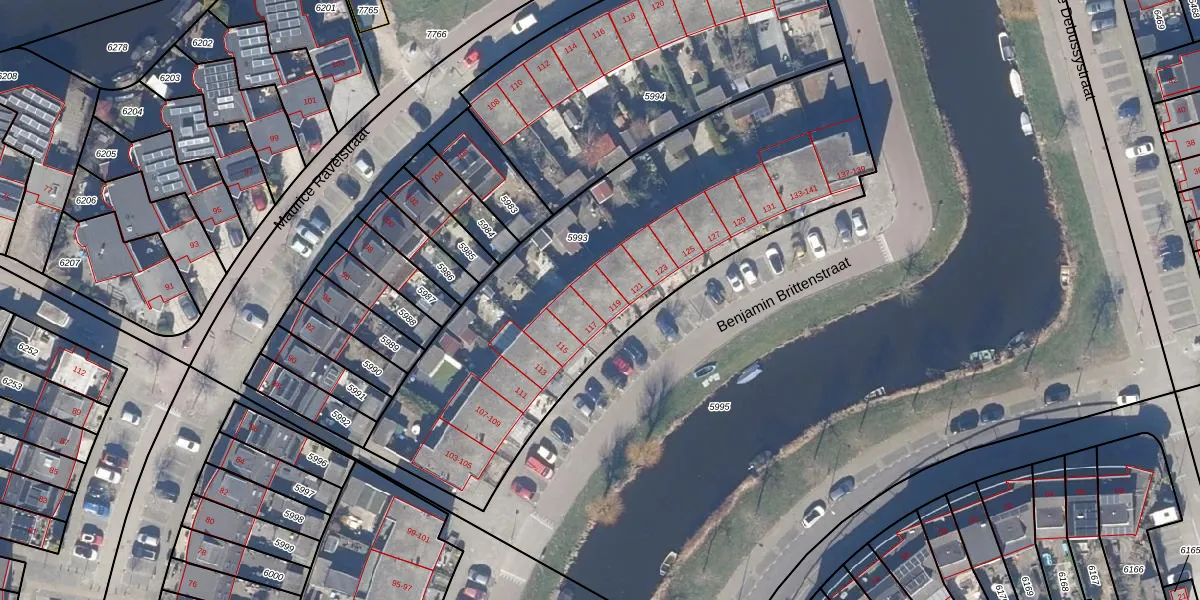 Benjamin Brittenstraat 119 is gelegen op kadastraal perceel ZDK00A5993. Deze kadastrale aanduiding is uniek en wordt gebruikt door het Kadaster om eigendomsrechten en andere zakelijke rechten vast te leggen. Het perceel maakt onderdeel uit van de kadastrale gemeente Zaandijk.