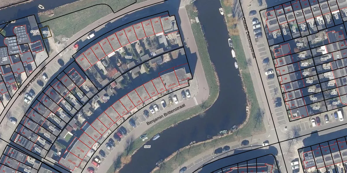 Benjamin Brittenstraat 141 is gelegen op kadastraal perceel ZDK00A5993. Deze kadastrale aanduiding is uniek en wordt gebruikt door het Kadaster om eigendomsrechten en andere zakelijke rechten vast te leggen. Het perceel maakt onderdeel uit van de kadastrale gemeente Zaandijk.
