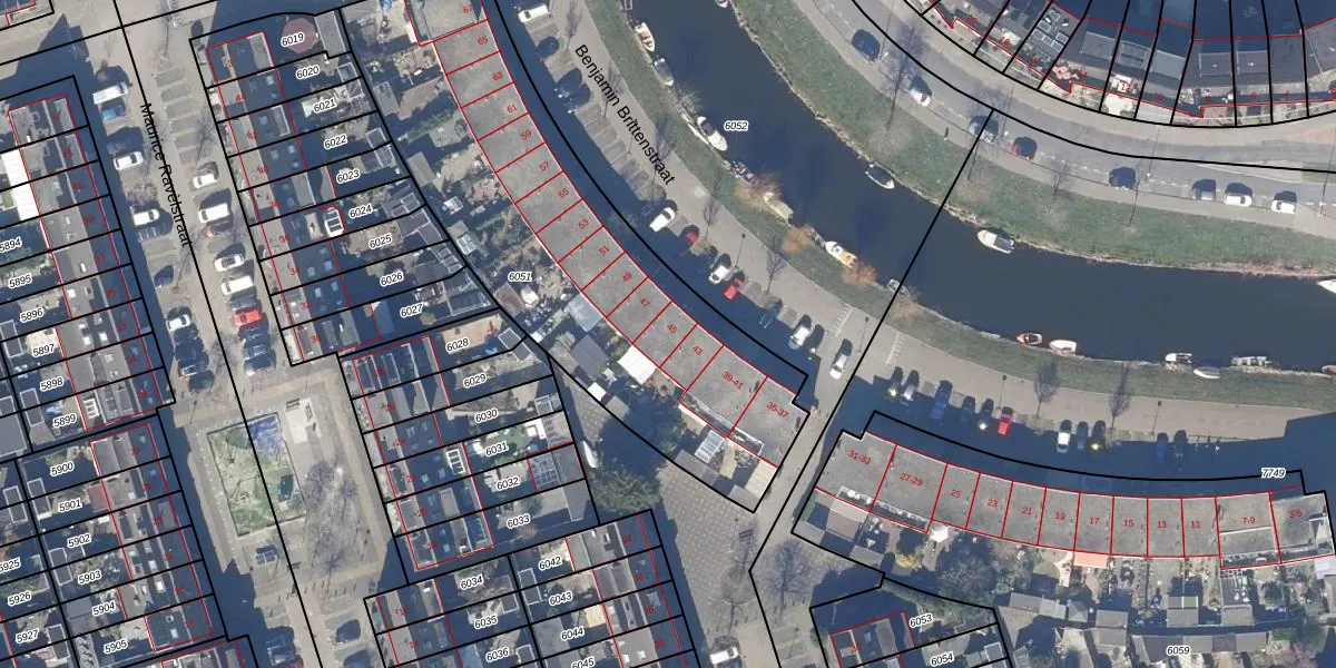 Benjamin Brittenstraat 45 is gelegen op kadastraal perceel ZDK00A6051. Deze kadastrale aanduiding is uniek en wordt gebruikt door het Kadaster om eigendomsrechten en andere zakelijke rechten vast te leggen. Het perceel maakt onderdeel uit van de kadastrale gemeente Zaandijk.