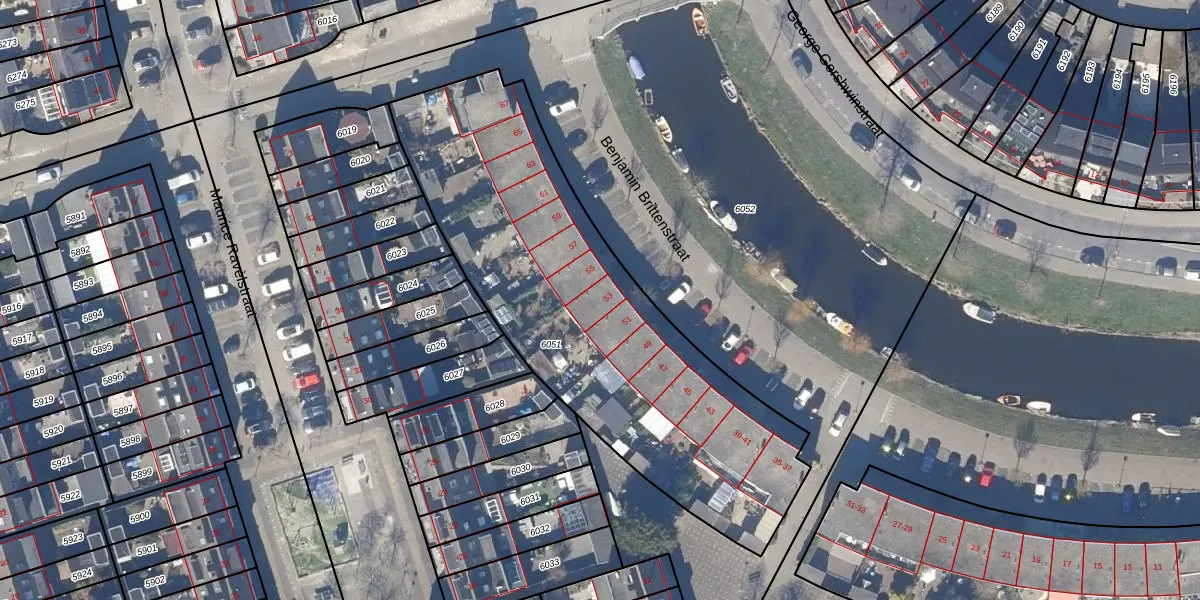 Benjamin Brittenstraat 53 is gelegen op kadastraal perceel ZDK00A6051. Deze kadastrale aanduiding is uniek en wordt gebruikt door het Kadaster om eigendomsrechten en andere zakelijke rechten vast te leggen. Het perceel maakt onderdeel uit van de kadastrale gemeente Zaandijk.