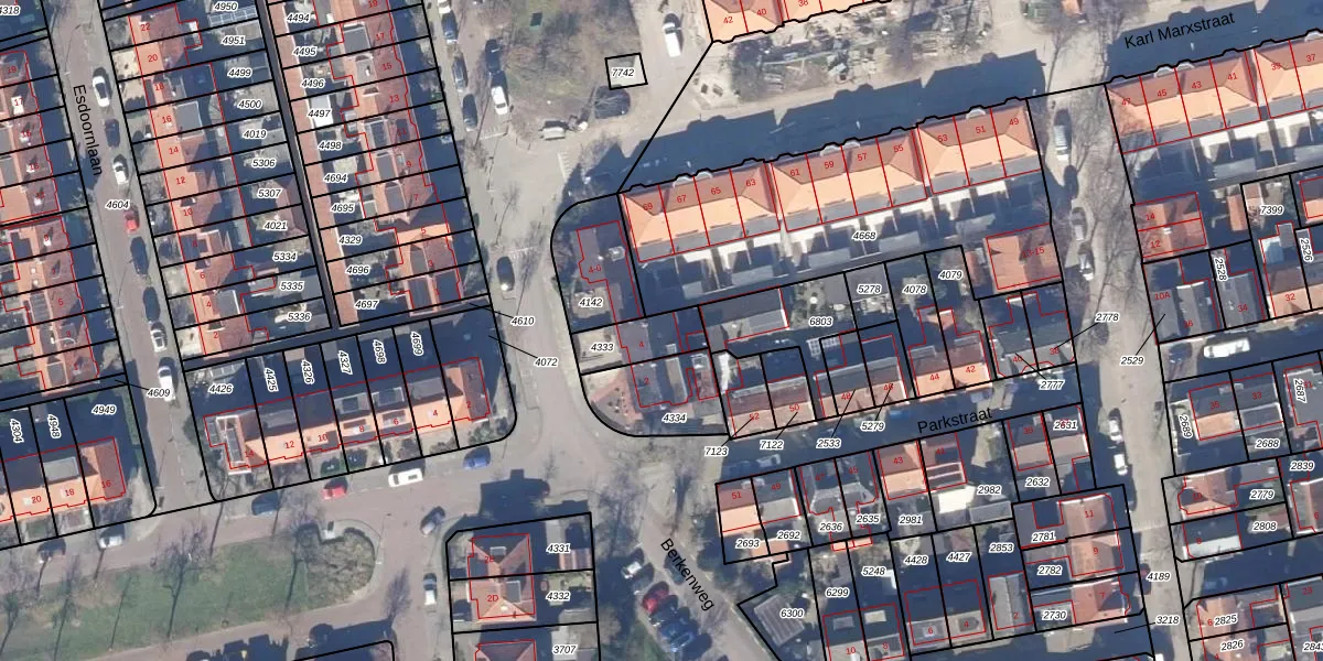 Gebruik de zoekbalk of klik op een perceel voor informatie over de adressen binnen dit perceel.
