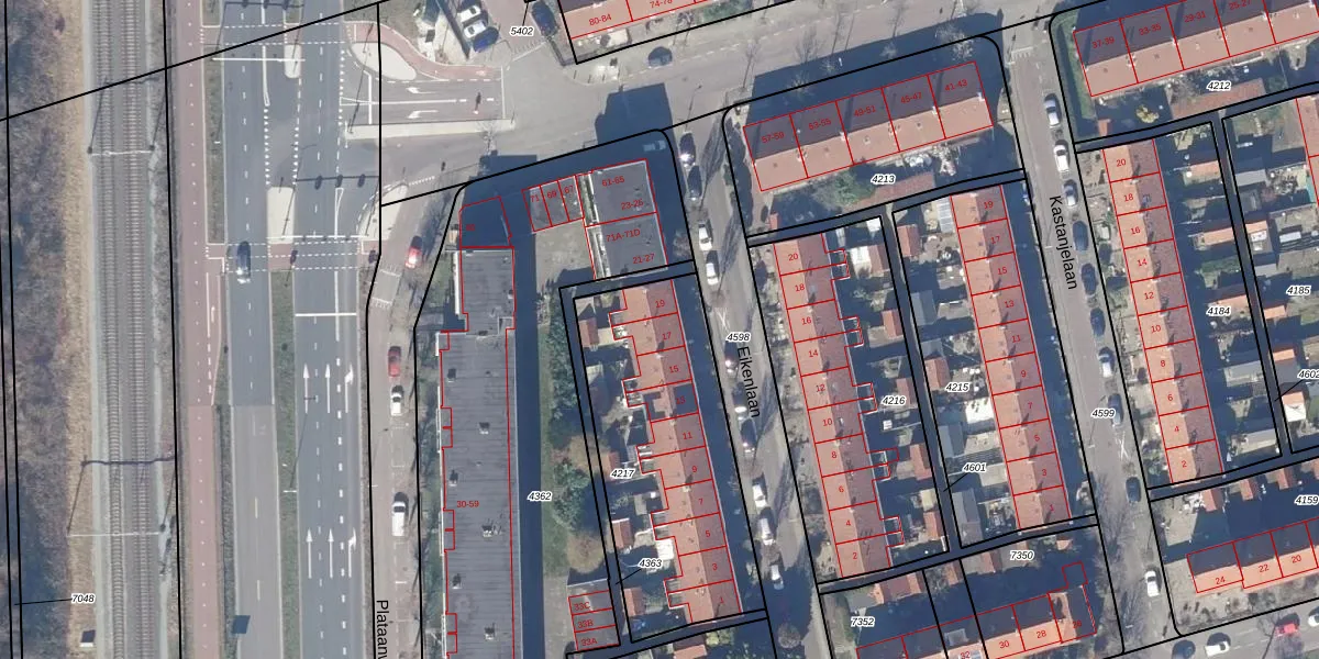 Het perceel waarop Eikenlaan 17 staat heeft een oppervlakte van 1048 m². Dit is een zeer groot perceel. De perceeloppervlakte wordt geregistreerd door het Kadaster. Gedetailleerde informatie over de maten van dit perceel kunt u vinden in het rapport Kadastrale kaart met maatvoering van Eikenlaan 17.