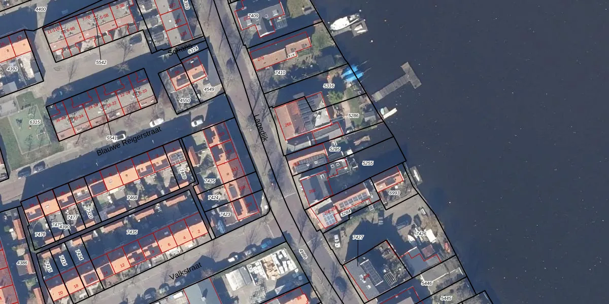 Gebruik de zoekbalk of klik op een perceel voor informatie over de adressen binnen dit perceel.