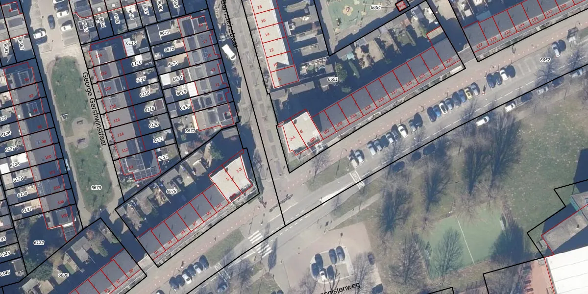 Het perceel waarop Leonard Bernsteinstraat 2 staat heeft een oppervlakte van 3967 m². Dit is een zeer groot perceel. De perceeloppervlakte wordt geregistreerd door het Kadaster. Gedetailleerde informatie over de maten van dit perceel kunt u vinden in het rapport Kadastrale kaart met maatvoering van Leonard Bernsteinstraat 2.