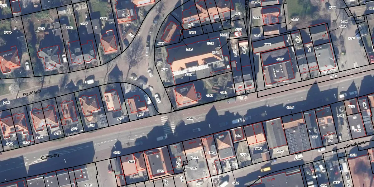 Het perceel waarop Parklaan 1-A staat heeft een oppervlakte van 473 m². Dit is een groot perceel. De perceeloppervlakte wordt geregistreerd door het Kadaster. Gedetailleerde informatie over de maten van dit perceel kunt u vinden in het rapport Kadastrale kaart met maatvoering van Parklaan 1-A.