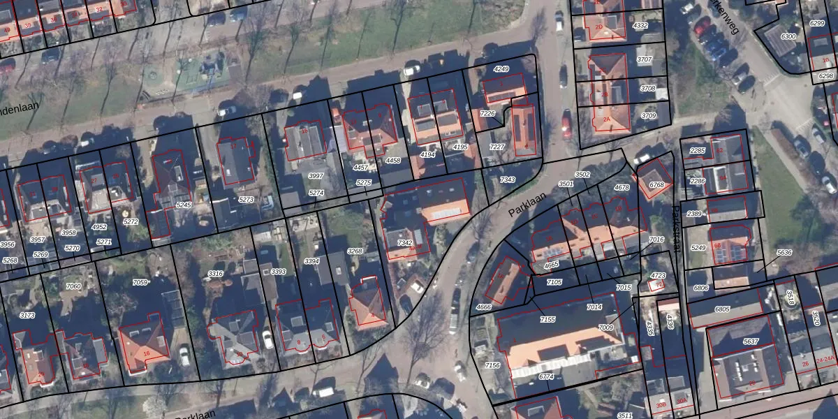 Het perceel waarop Parklaan 4-f staat heeft een oppervlakte van 595 m². Dit is een groot perceel. De perceeloppervlakte wordt geregistreerd door het Kadaster. Gedetailleerde informatie over de maten van dit perceel kunt u vinden in het rapport Kadastrale kaart met maatvoering van Parklaan 4-f.