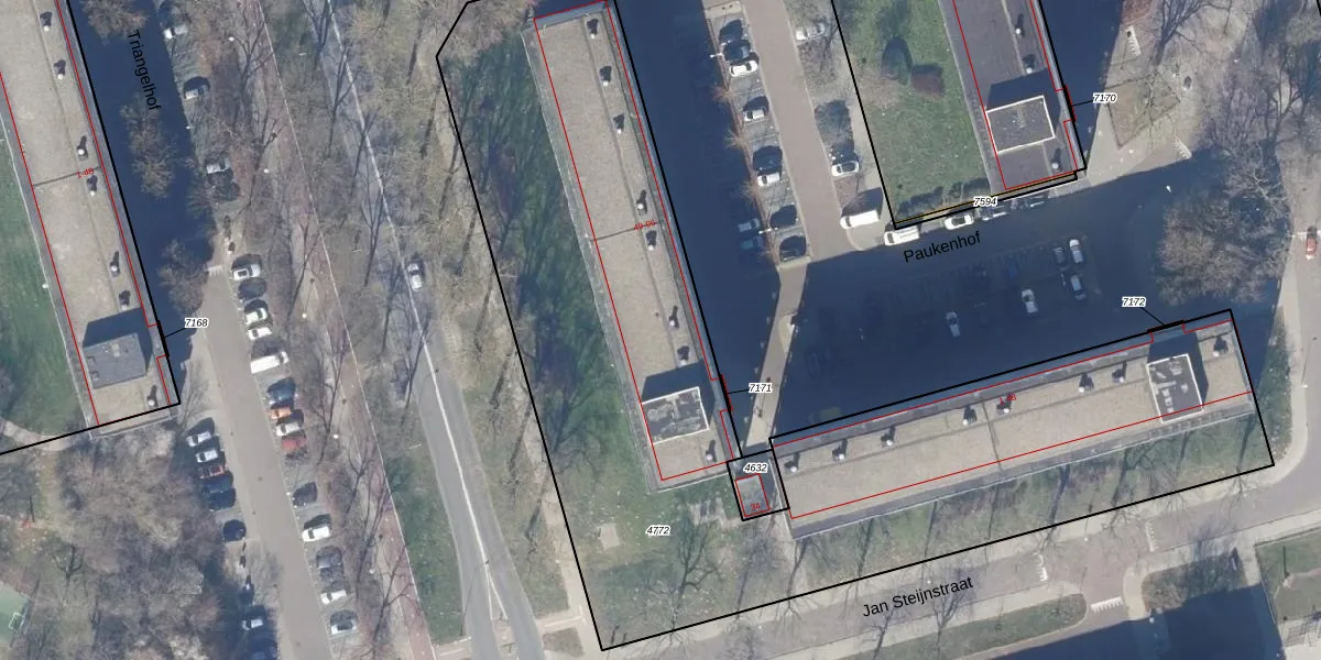 Het perceel waarop Paukenhof 52-GA17 staat heeft een oppervlakte van 4615 m². Dit is een zeer groot perceel. De perceeloppervlakte wordt geregistreerd door het Kadaster. Gedetailleerde informatie over de maten van dit perceel kunt u vinden in het rapport Kadastrale kaart met maatvoering van Paukenhof 52-GA17.